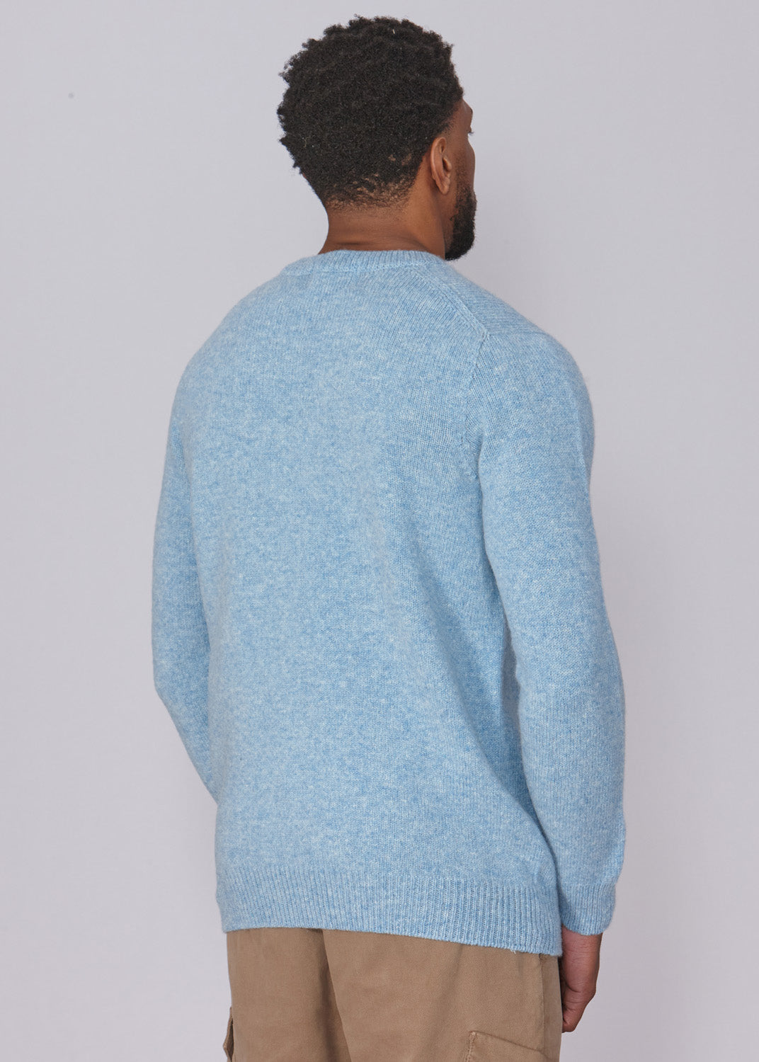 Shetland Wool Mens Crew Neck Jumper - Baby Blue