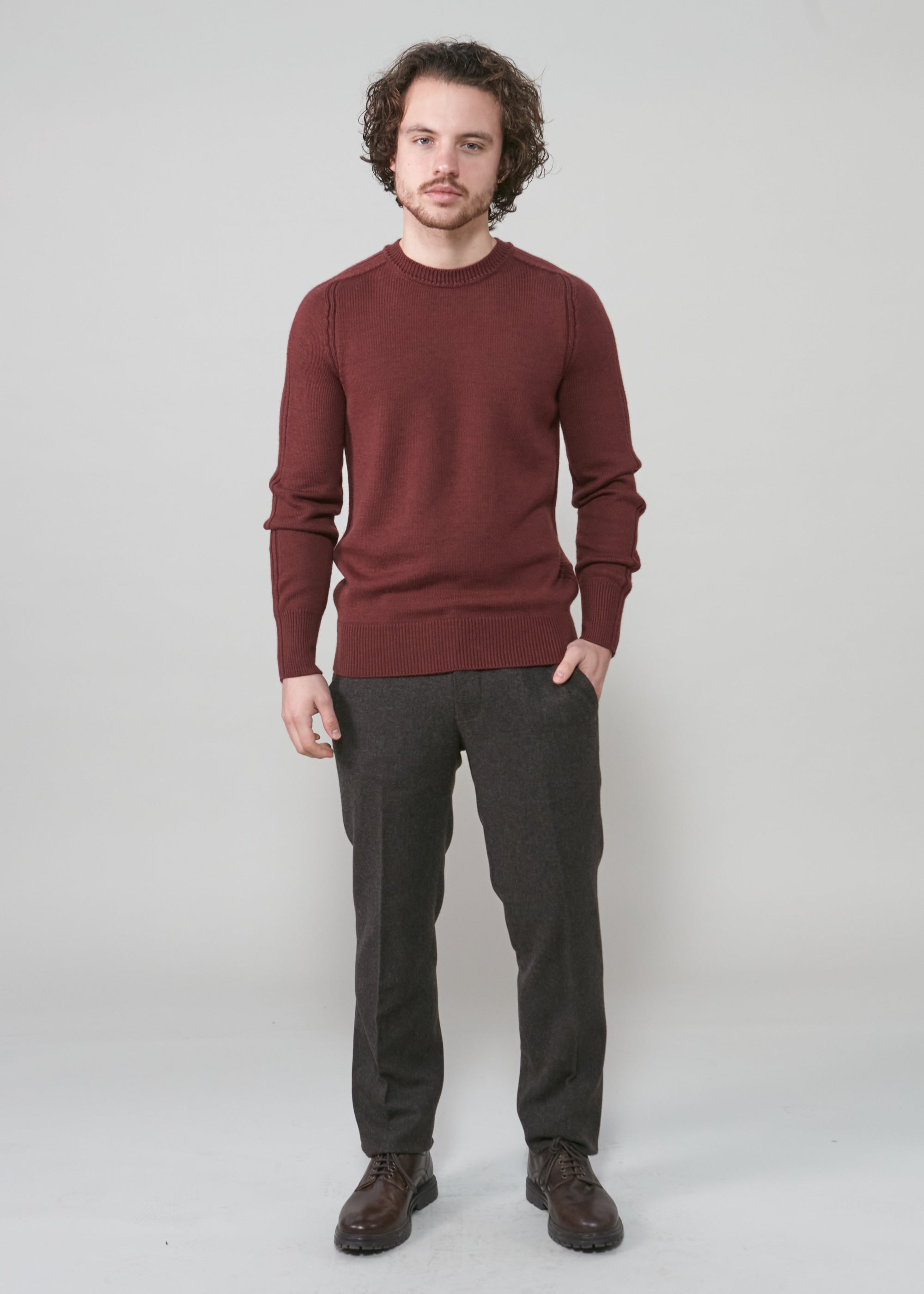 Mens Crew Neck Extrafine Merino Wool Jumper - Merlot